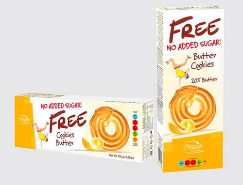 SKŁAD: maka pszenna, masło 20%, tłuszcz roślinny (palmowy), substancja słodząca: matitol, skrobia ziemniaczana, mleko odtłuszczone w proszku, pasteryzowana masa jajowa, syrop maltitolowy, sól, aromat.