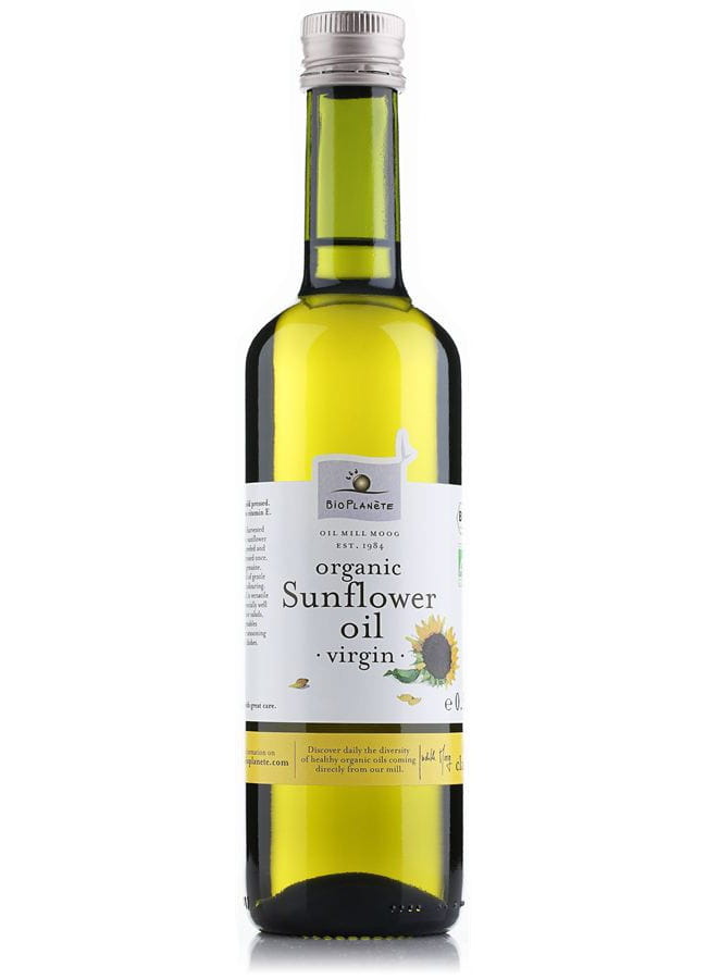 Organiczny olej słonecznikowy tłoczny na zimno wysokiej jakości.