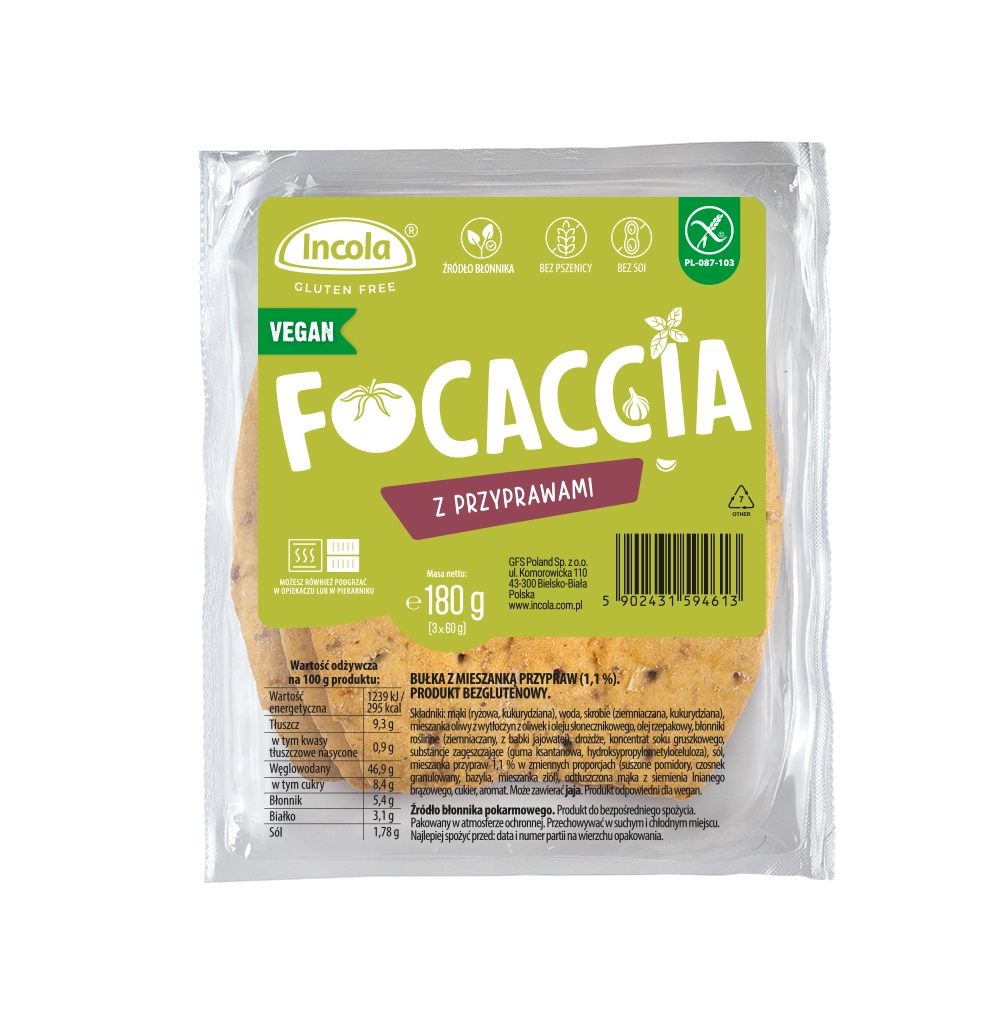 BUŁKI FOCACCIA Z PRZYPRAWAMI BEZGLUTENOWE (3 szt.) 180 g - INCOLA