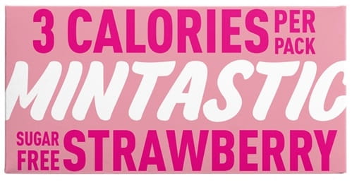 90 % mniej kalorii w porównaniu do innej pastylki do ssania o smaku truskawkowym.
