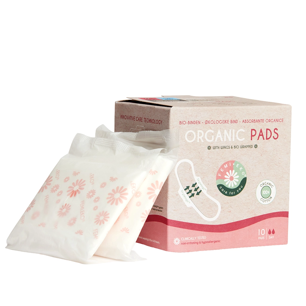 Femi.Eko® organiczne podpaski oferują naturalny komfort i ochronę, dzięki czemu możesz czuć się pewnie i bezpiecznie przez cały dzień. Wykonane w 100 % z bawełny organicznej, zapewniają oddychalność i delikatną chłonność, idealne dla wrażliwej skóry. Technologia DRYWINGS™ dodaje dodatkową ochronę przed przeciekaniem po bokach, gwarantując swobodę ruchu bez obaw. Spodnia warstwa wykonana jest z biopolimerów, które są oddychające i bezpieczne dla twojego ciała oraz dla planety. Ultra miękkie, hipoalergiczne i wolne od szkodliwych chemikaliów, pomagają utrzymać zdrową równowagę pH, zmniejszają ryzyko podrażnień i wspierają ekologiczny styl życia.