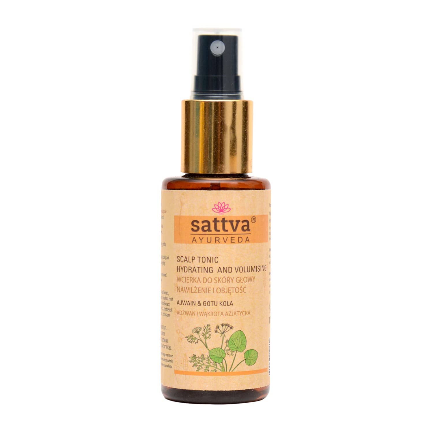 WCIERKA DO SKÓRY GŁOWY NAWILŻENIE I OBJĘTOŚĆ ADŻWAN + WĄKROTA AZJATYCKA 100 ml - SATTVA